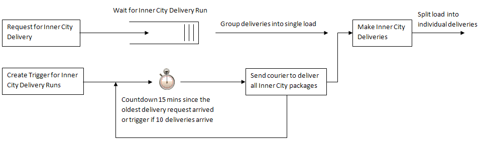 We start by assuming we can model these accurately using random variables, so we can concentrate on the remaining logic in the system. Figure 1 shows a flow diagram for the Inner City deliveries.