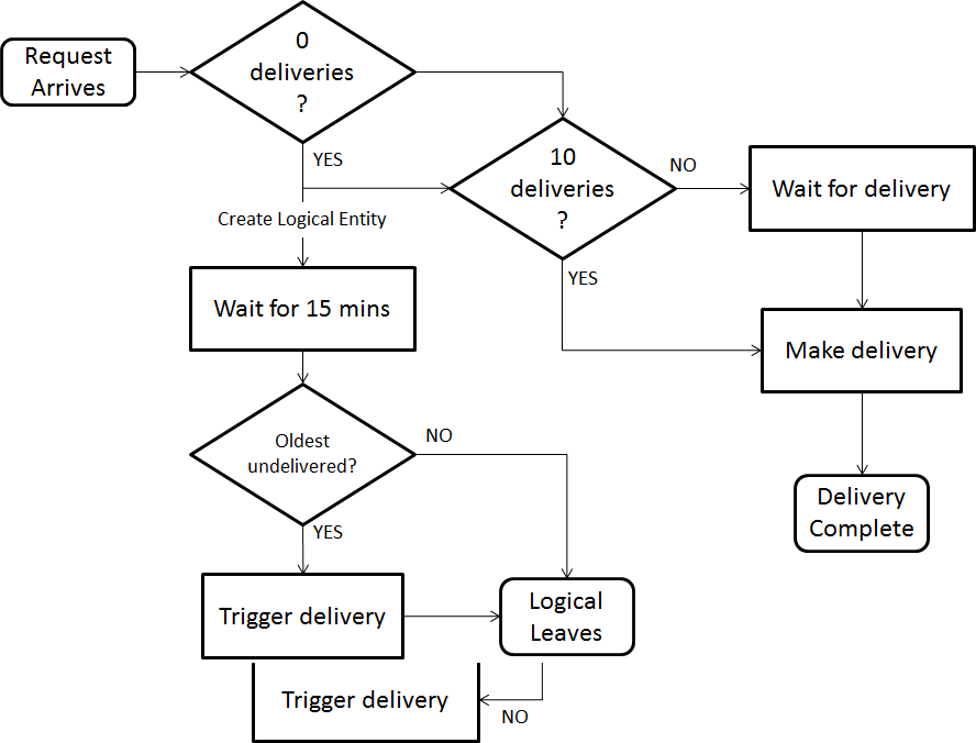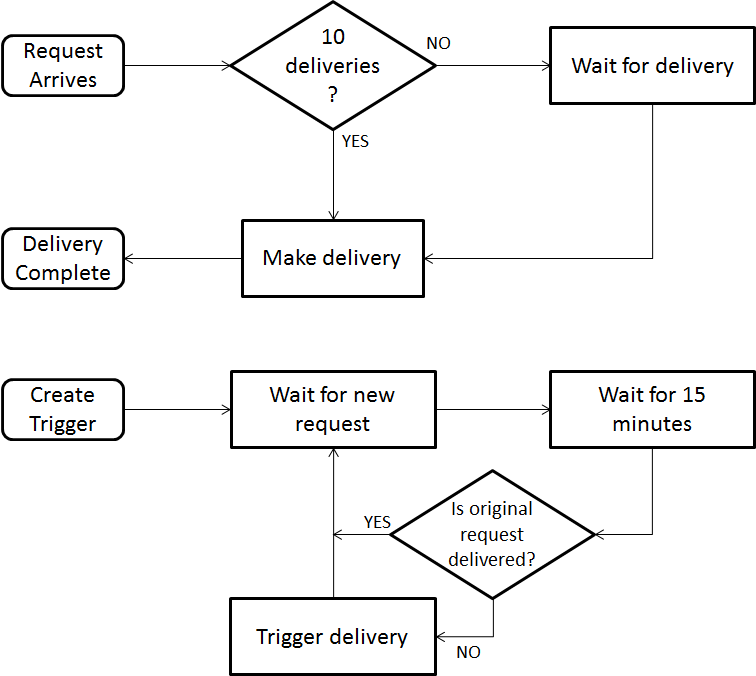 Now we have triggered a delivery either using a timer or by reaching the maximum load. Next, we have to load all the currently waiting deliveries, but to do this we need to record what the load will be. The following flash tutorial shows how to record the load for a delivery triggered by a timer or by the maximum load being reached: